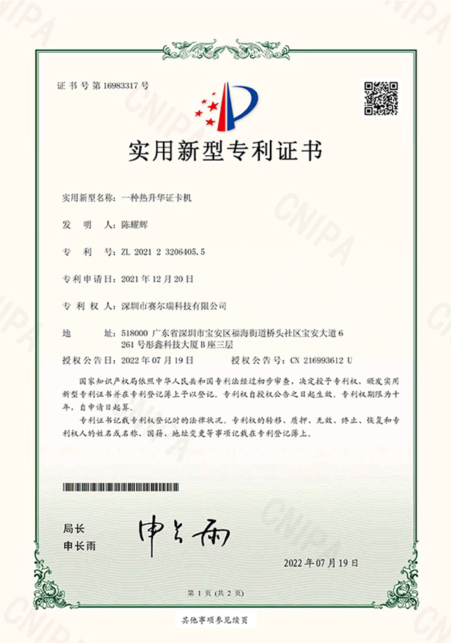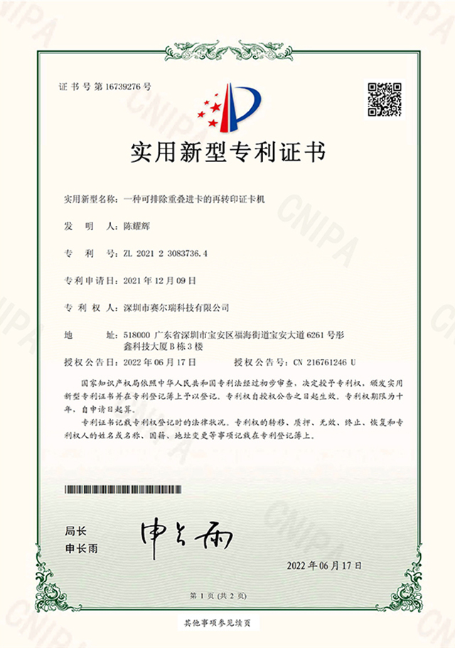 La adquisición de estas patentes está enriqueciendo constantemente la connotación técnica de la investigación y el desarrollo de la impresora de tarjetas, lo que permite a Seaory pasar al siguiente nivel en respuesta a la innovación nacional y a la tecnología central inteligente.