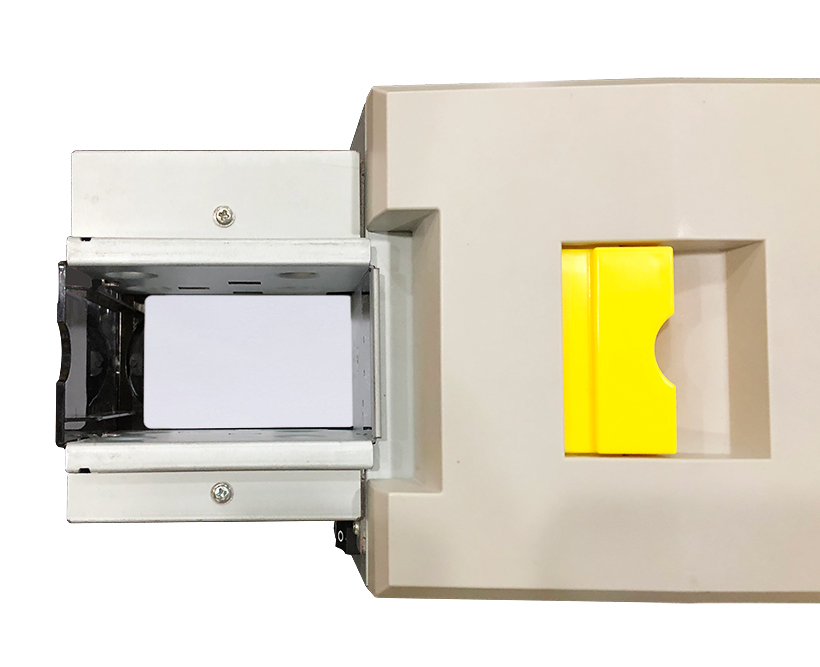 mechanical mechanism to push a rectangular card into a specific device. The existing card