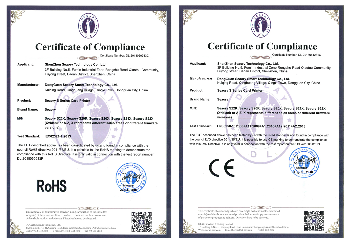 At present, our S series card printers have obtained CE-EMC, CE-LVD, FCC, RoSH certification, which can gain the trust of market supervision organizations to a certain extent, and effectively prevent the occurrence of irresponsible allegations. . For consumers, the products with the logo give them a high degree of security, they only rely on and only want to buy products with a safety certification mark.