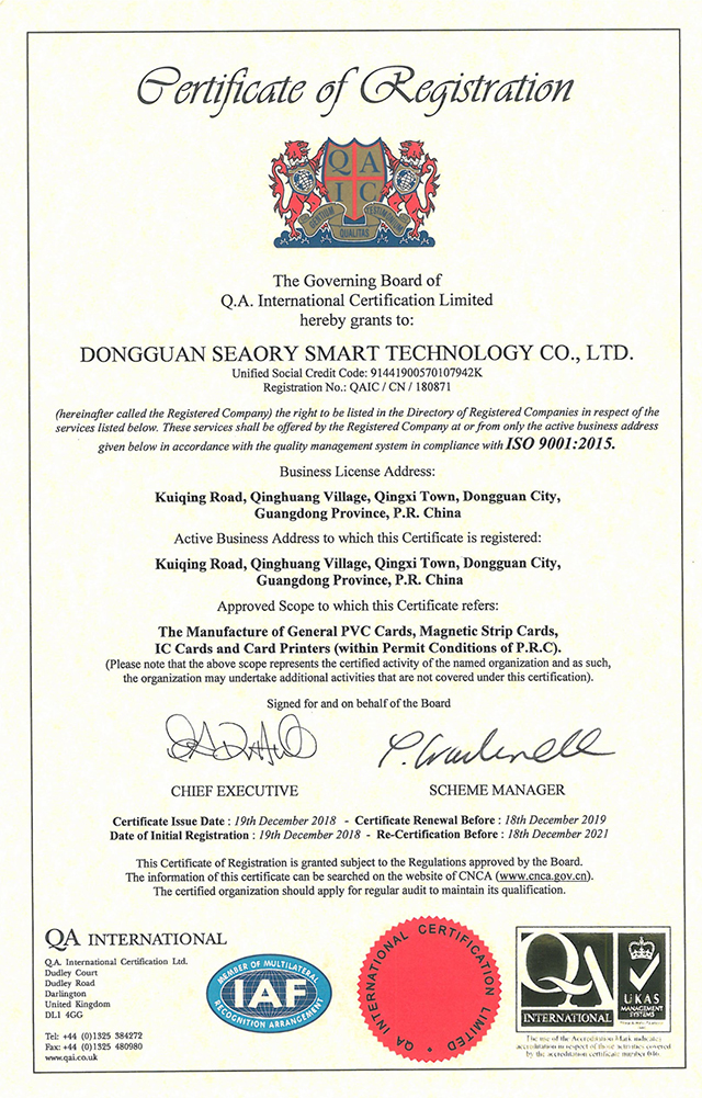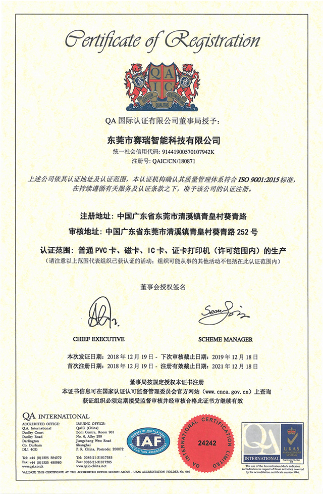 The adoption of ISO9001:2015 proves the strength of the company itself and on the other hand is a spur to the company's growth. Ever after, Our company will continue to strictly implement, optimize and standardize the quality management system, rules and regulations, continuously improve and explore the effectiveness of the system operation, strive to work up to new height, and lay the foundation for a comprehensive scientific management to provide high quality products and services for the card printer and smart card products industry!